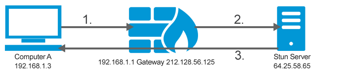 - STUN (Session Traversal Utilities for NAT) 는 기기의 공인 IP 를 알려준다. 기기의 NAT가 직접 연결을 허용하는지, 아닌지 파악하는 역할도 한다.